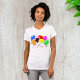 Its party time or at least that is what this design suggests. This design has a number of colorful party balloons set on a colorful background. It really does show that a great part is in store. This party balloons design looks great on this womens t-shirt. Perfect for yourself or as a gift