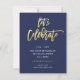 PARTY Bar Mitzvah modern navy + faux gold script Invitation