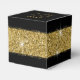 Elegant square party favor box with heart cutout window in yellow gold glitter band stripe around and confetti sprinkles on a black background with custom thank you text, perfect for a modern and chic birthday, bat mitzvah, Quinceañera, bridal shower, baby shower or bachelorette party. Click CUSTOMIZE FURTHER to change the fonts, colors and layout to create a fun and unique personalized favor box for your party guests guests.