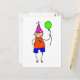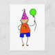 Cute whimsical illustration of a little cartoon boy going to a birthday party wearing his party hat and holding his balloon. Image available on various gifts and products.