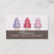 A sweet design for a sweet shop - perfect for a bakery, or specialty cake maker. A pretty trio of cakes in colorful icings and confetti sprinkle decorations sit atop delicate curly cue cake stands. On a subtly striped background with a rich chocolate brown border at the bottom. Easily customize with your business name and important information on the front and back.