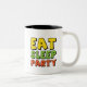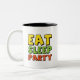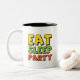 Create a fun, energetic, and modern design centered around the theme "Eat, Sleep, Party." This design will be used across various formats like t-shirts, posters, stickers, and digital graphics, appealing to a youthful, outgoing audience. The design should convey a lively, carefree vibe while remaining visually appealing.