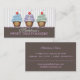 A sweet design for a sweet shop - perfect for a bakery, or specialty cake maker. A pretty trio of cupcakes in colorful icings, sprinkles and topped with a cherry, rest against a subtly striped background of pale mocha and a rich chocolate brown border at the bottom. Easily customize with your business name and important information on the front and back.