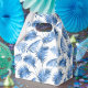 This party favor box is perfect for your wedding celebration, shown with a lovely blue palm art print.