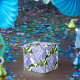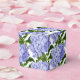 Party favor box shown in a lovely blue-lavender hydrangea flower print design.