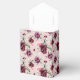 Party favor box is shown in a lovely roses print with a white ribbon bow.