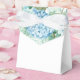 Party favor box is shown in a lovely blue Hydrangea print on the flap.