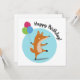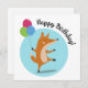 Add a playful twist with this dancing fox and colorful balloons! Make it extra special by customizing with your text