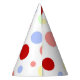 A fun and funky party hat with lots of colourful circles.