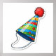 A high-quality graphic of a festive birthday party hat with colorful stripes and polka dots, perfect for celebrating birthdays and other special occasions.