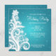 Party Invitation Swirly Christmas Tree Turquoise