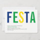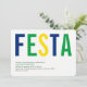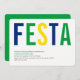 Brazil invitations, for any occasion. Front; Fiesta, personalized information, in the colors of Brazilean flag. Back; flag of Brazil.