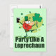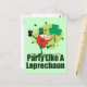 This funny St. Patrick's Day design features a silly-looking leprechaun holding a giant shamrock and a pint of beer and the caption "Party Like A Leprechaun.