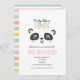 Party like a panda bright multicolor children's birthday party invitation. Graphic stripe backer design, color can be changed. Part of a collection.