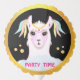 Party llama balloon. Cute llama with colorful ribbons over the clouds with golden frame Text can be personalized. High on the mountains there are free llamas and there are no dramas. Enjoy your party, gatherings and celebrate each good moment of your life!
