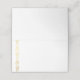 This folded name place card is shown in white with a elegant style gold leaf scroll print, card has a gold colored inside.