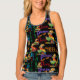 Women's All-Over Print Racerback Tank Top, Black Piping, S