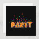 Party is the word in a black background surrounded with stars and confetti for engagements, gatherings, special occasions. Personalize with your own text on the back.