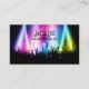 Business card with image of party people - ideal for a DJ. This card is ready for customization with your business information. All text can be modified - change the style, colors, sizes, add or remove text fields to suit your needs. If you need any help please email Kirsty on kirsty_pargeter@yahoo.co.uk