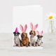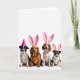 This design shows four dogs sitting in a neat row against a bright white studio backdrop, lit with soft light that brings out their different fur textures. On the far left, a black-and-white dog wears a fuchsia party hat and looks forward with a curious, attentive gaze. Beside it, a long-haired golden-brown dog sits calmly with oversized plush pink bunny ears 🐰, leaning slightly as if staying close to the group. The third dog, brown-and-white, has an open-mouthed grin and matching pink bunny ears 🐇, giving the scene a friendly, together-at-once feel. The last dog is smaller and tri-colored, also wearing long pink bunny ears, with an earnest look that reads like a quiet, loyal companion. Any text would sit best centered near the top in a soft pink tone, leaving plenty of white space around the dogs for a gentle, airy balance 🌷. The accessories stand out sharply against the white background, with the fuchsia hat on the left and the long pink ears repeating across the other three dogs.
