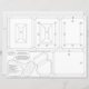 Easy craft to make! Just laminate or coat with a spray fixative, cut out the parts, fold under the seam allowance side flaps, thread ribbon through panels 2 & 3 to make the photo pocket, assemble and connect the panels, use the pattern for the clear bendable piece, that you cut from a sheet protector, also used to make the acid free / photo safe, clear photo sleeve, and sandwich between the top and bottom, front and back strut leg panels, for the strut leg to bend and pitch out, when attached to the frame's easel back panel, and connected with ribbon, at the bottom right corner of the easel back strut leg!