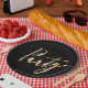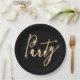 Party Sparkler Text on Black Paper Plate