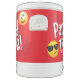 Party anyone? Serve lots of your favorite beverage in this large water cooler featuring a red background and yellow emojis labeled with the words "party time".