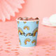 This pastel blue paper cup has a seamless kawaii rainbow pattern on it. This cute rainbow design is hand painted with watercolors and love.
