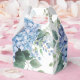 Party favor box is shown in a pretty elegant blue hydrangea floral watercolor print.