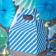 Party favor box is shown with a blue and white stripes print.