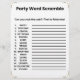 Think fast and unscramble the fun! This Party Word Scramble is the perfect printable game for birthdays, game nights, family parties, or team events.