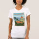I love wearing a reprint of my colored pencil drawing of Annie the cat looking over the hillside. My illustration is based on a picture I took of Annie the manx cat. The printing turned out lovely, and the shirt is soft and thick. The American Apparel shirt run on the smaller size, so I always order a large or extra large.