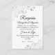 This beautiful enclosure card is designed as a pass or ticket for the wedding reception. The design features elegant lacy silver gray curls and swirls on a white background - making it easy to write in the number of guests admitted. Perfect addition to your wedding invitations! Esta hermosa tarjeta adjunta está diseñada como un pase o boleto para la recepción de la boda. El diseño presenta elegantes rizos y remolinos de encaje gris plateado sobre un fondo blanco, lo que facilita escribir el número de invitados admitidos. Complemento perfecto para tus invitaciones de boda.