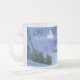 A 3D fantasy landscape full of shimmering snow and magical fairy lights. A row of silvery shining lamps lights the trail through a snowy mountain pass hemmed in by steep rocky cliffs. The sparkling snow-covered path is hemmed in by dark fir trees. On the far side of the cleft a translucent glowing fairy castle awaits the enchanted traveler on his journey to fairyland.