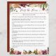 This is a rustic and elegant fall themed “Pass the Poem” bridal shower game card. It uses a modern watercolor autumnal floral and foliage design and a feminine handwritten script. The color palette features rich fall colors such as burgundy, burnt orange, terracotta, deep green, berry and gold. Easily customize all of the text as required using the provided text template. Please contact the designer for any queries regarding this design or for any matching products that aren't available.