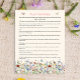This is a bohemian pass the poem game card for a bridal shower. The design features a colorful and delicate field of summery wildflower florals in pretty shades of blue, terracotta, pink, purple and yellow. The butterflies and bees add the finishing whimsical and pretty touch. You can customise all of the text to your requirements. Please contact the designer for any variations to this design or for additional matching products.