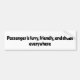 Passenger is furry, friendly, and sheds everywhere bumper sticker