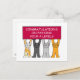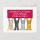 Four cartoon cats holding up a cerise coloured sign that says 'Congratulations on passing your A Levels'.