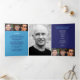 Simple modern graphic funeral program in dark blue, cyan, and white. Replace the sample text and placeholder photos with your own special photos and memorial order of service, obituary, reading or poem, and acknowledgments, and personal information details. Other matching funeral and keepsake remembrance items are available. Text graphic 'The passing of a legend' and design by www.mylittleeden.com
