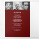 Simple modern graphic funeral program in dark red, black and white. Replace the sample text and twelve placeholder photos with your own special photos and memorial order of service, obituary, reading or poem, and acknowledgments, and personal information details. Other matching funeral keepsake remembrance items are available. Text graphic 'The passing of a legend' and design by www.mylittleeden.com