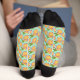 This fun Halloween socks are bright and colorful. The small print is crisp and shows the fun details. The softness of the socks feels nice on my feet and ankles. .