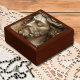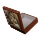 Elegant wooden keepsake box with a glossy tile top featuring a powerful faux 3D design of Jesus’ face, resembling a weathered stone statue with subtle cracks. His eyes are closed in peaceful sorrow, evoking the Passion of the Christ. The aged, sculptural look brings depth and reverence, making this a meaningful gift for Lent, Easter, confirmations, or anyone drawn to the solemn beauty of Christ’s sacrifice. Ideal for storing rosaries, prayer cards, or sacred keepsakes.