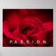 Poster shown with a photo print of a lovely red rose with text PASSION.