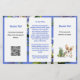 Small business brochure to customize on both sides and fold into thirds. The background is periwinkle blue with passionflowers image. Text is blue for the headings and dark black for the rest. Each side of this 5x8 size paper has three sections with text templates. Include lots of information about your business. Also add a logo, QR code, and / or photo in the spaces provided. If you don’t want to use one or more of the image holders, remove it by going to the “edit in design tool” which can be found by scrolling to the bottom of the personalize area. In the design area choose the image by clicking on it, then hit the “trash can” symbol for that image. Changing the size of the paper may alter the design to not fit correctly.