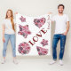 Passion Red Rosas, Gerberas and Carnations in a heart, circle, stars in a white surface with a word LOVE and signed .