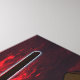 An allegorical depiction of Passover. With a red sunset sky presaging the tragedy that would shortly befall the Egyptians, Moshe's arm holds aloft his staff from behind pyramids in promise of the exodus to occur that night. Customize by adding your own text. The blue and white stripes of Moshe's sleeve evoke the prison garb of those held in Holocaust concentration camps.