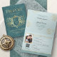 Invite guests on the adventure of a lifetime with this passport-style wedding invitation in soft sea green and teal tones. The cover features a modern monogram crest for an elegant first impression, while the inside includes travel-inspired passport stamps, a couple photo, and lush gold details that add a touch of destination-wedding glamour. Perfect for beach ceremonies, elopements, and celebrations abroad, it blends style, personality, and wanderlust in one beautifully designed keepsake. Customize yours today and start the journey in unforgettable style!