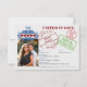 These adorable wedding save the date cards are designed to look like a passport with a black faux leather background, an American eagle, and gold print. The back resembles the inside of the passport with a photo and cute port of entry arrival stamps listing your wedding destination. Cute, fun, whimsical way to let your friends and family know to keep the date open for traveling to your wedding.