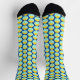 This fun Halloween socks are bright and colorful. The small print is crisp and shows the fun details. The softness of the socks feels nice on my feet and ankles. .