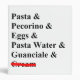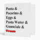 Real Italian cuisine aficionados - and red-blooded Italians - know that real pasta carbonara has the following ingredients: beaten eggs, pasta water, pasta, diced guanciale (cured pork jowl), and Pecorino Romano. The word "cream" is struck out in red. Can personalize with your name on spine of binder.